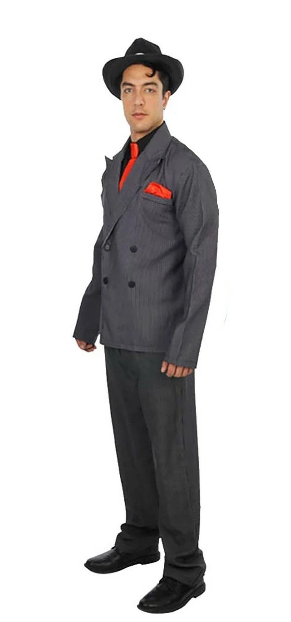Become your city’s richest gangster in this Gangster Man’s costume! This classic costume features a grey jacket with an attached red handkerchief, a dickie with a red tie, a black hat, and grey pants, and will be perfect for a 20’s themed party or many other events!