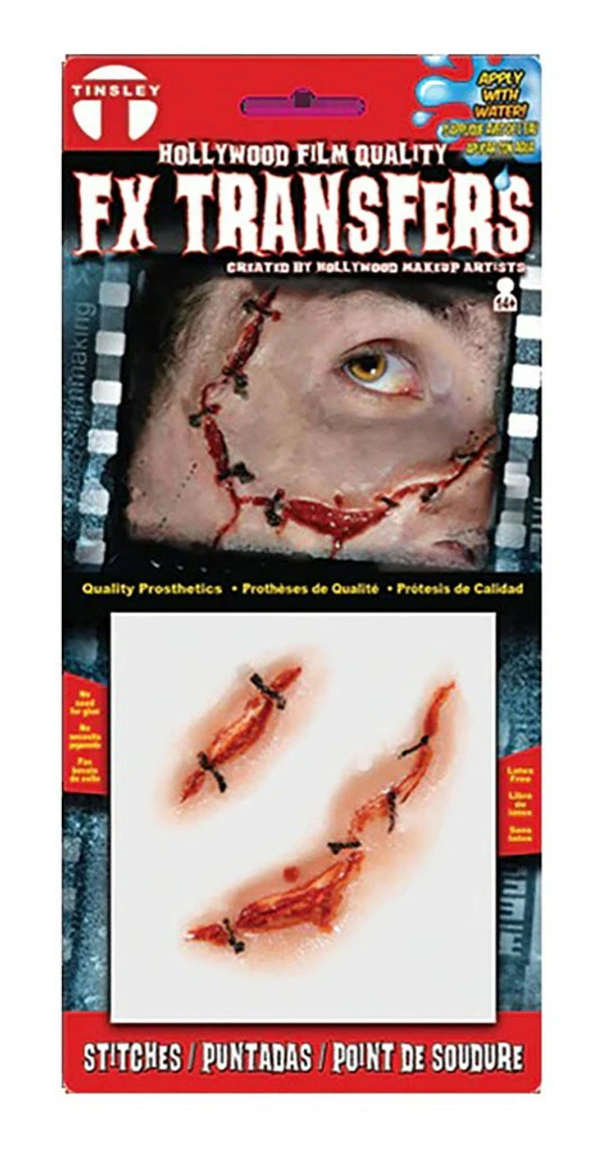 Give your costume an extra spooky touch with this FX makeup! The 3D F/X Transfers Point Stitched will make it look like you have a stitched-up wound in seconds. You can do easily apply it with water!