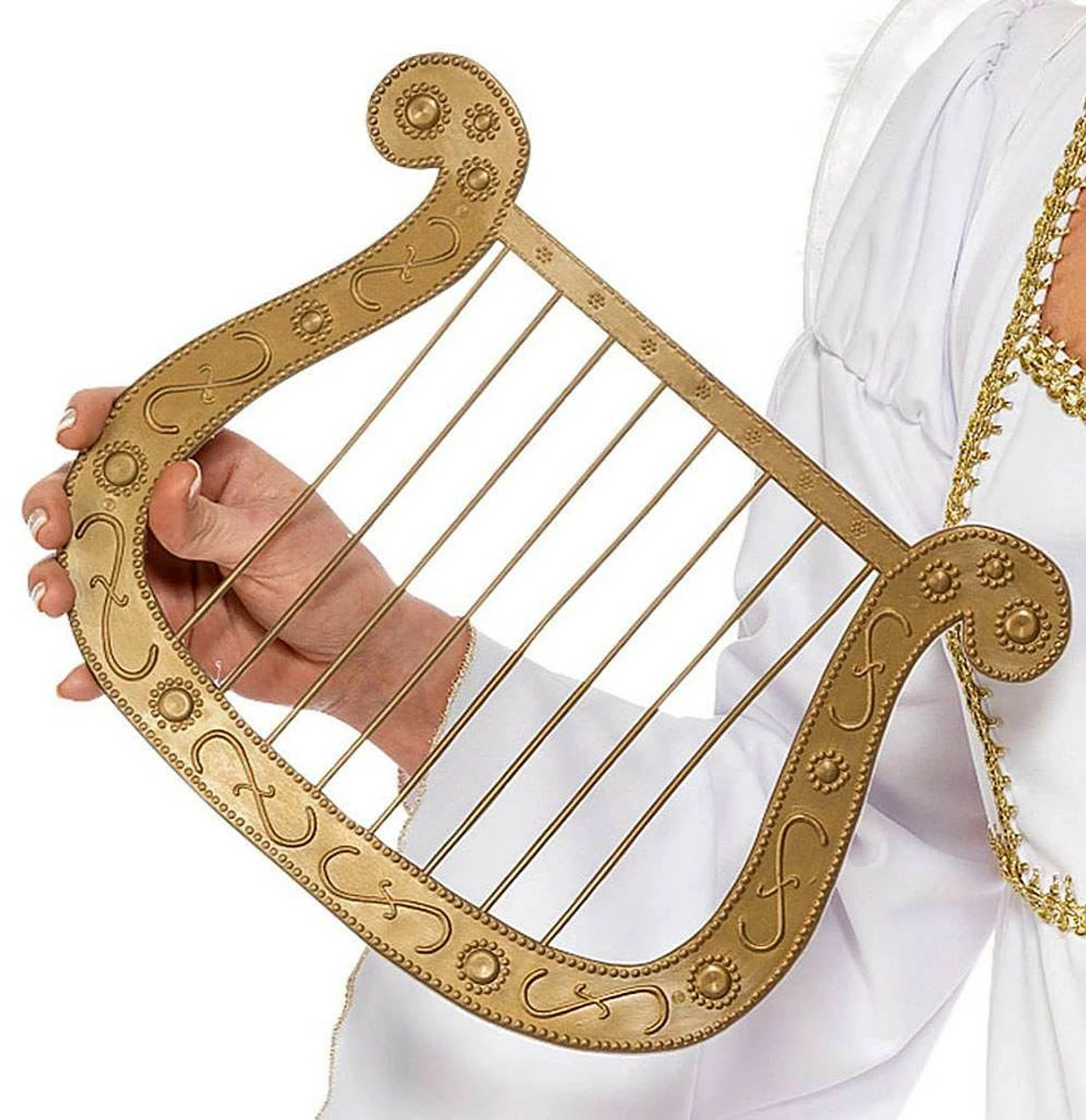 Sing down from the heavens in your Angel Costume with this golden Angel Harp! While it is made of hard plastic, it is still flexible.