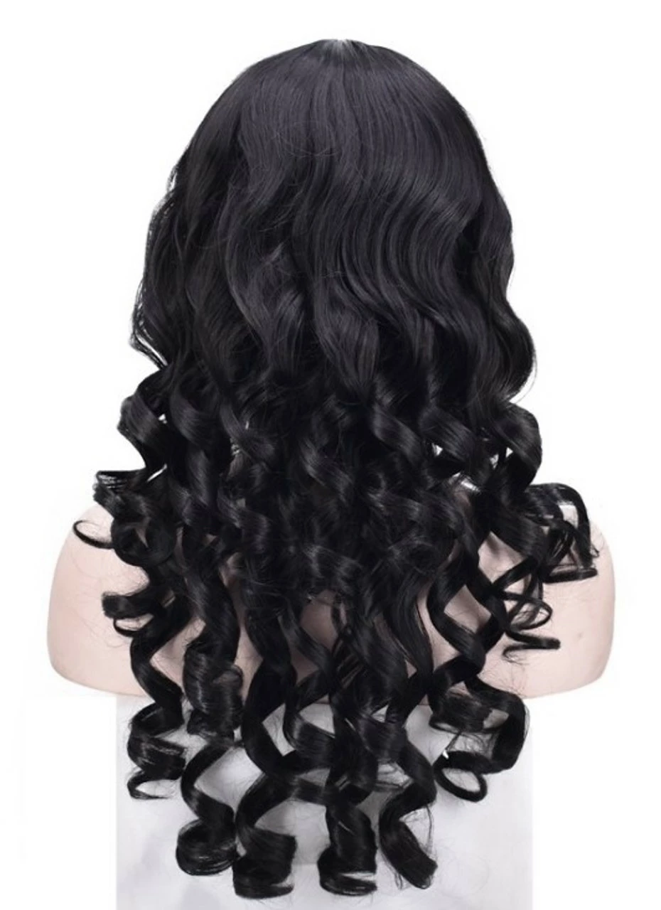 Transform into an amazing witch, gothic or vampire with this wavy and soft gothic black wig. It will complete your dark and sulfurous look.