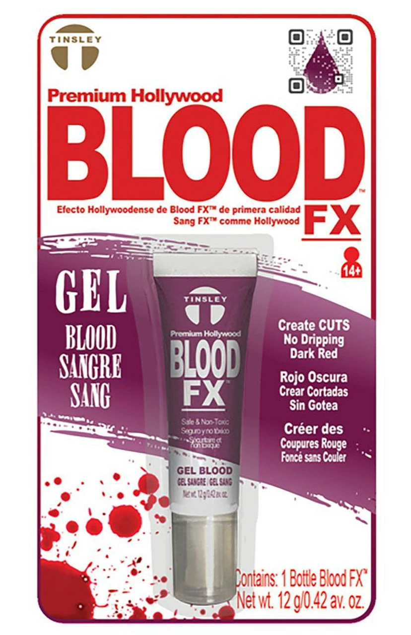 Complete your Halloween Makeup with this Blood F/X Dark Red Gel! This dark red gel doesn’t drip and is ideal for wounds and cuts.