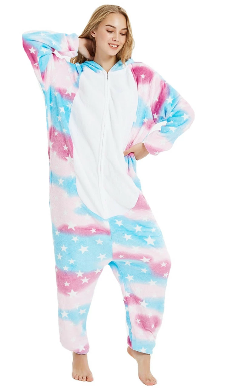 Become one of everyone’s favorite mystical creature – Plus, Onesies are trendy this year! Why not choose a costume that will not only be cute and practical, but also soft and comfortable? This new blue pot unicorn onesie features white magical stars, adorable ears and a horn attached to the hood to make you look extra cute. The onesie also includes a butt flap, for conveniences so you can also use it as a cool lounge wear item or pyjama!Now what are you waiting for, come and join the trend!