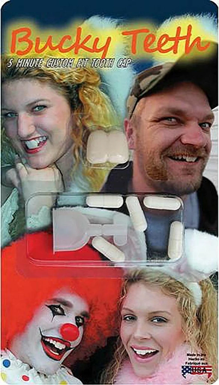 Add an extra twist to your bunny, clown or big baby costume with this custom fit Buck Tooth Cap Kit! This Buck Tooth Cap can be custom fitted to your teeth so anyone can have fun with this kit! Recommended for age 13 and up.