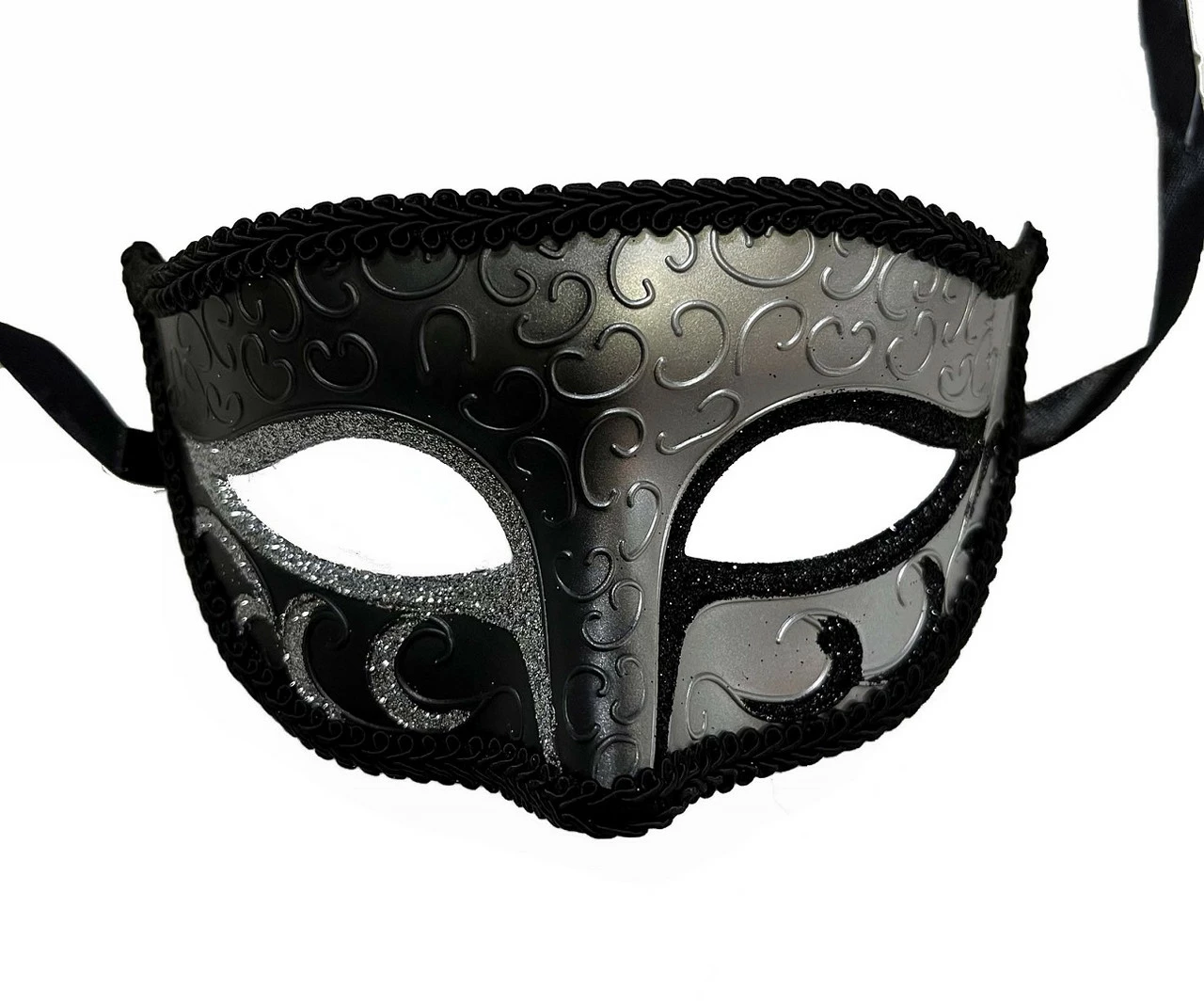 Get ready for Carnival with this Carnival Mask in Black and Silver, featuring glitter detail!