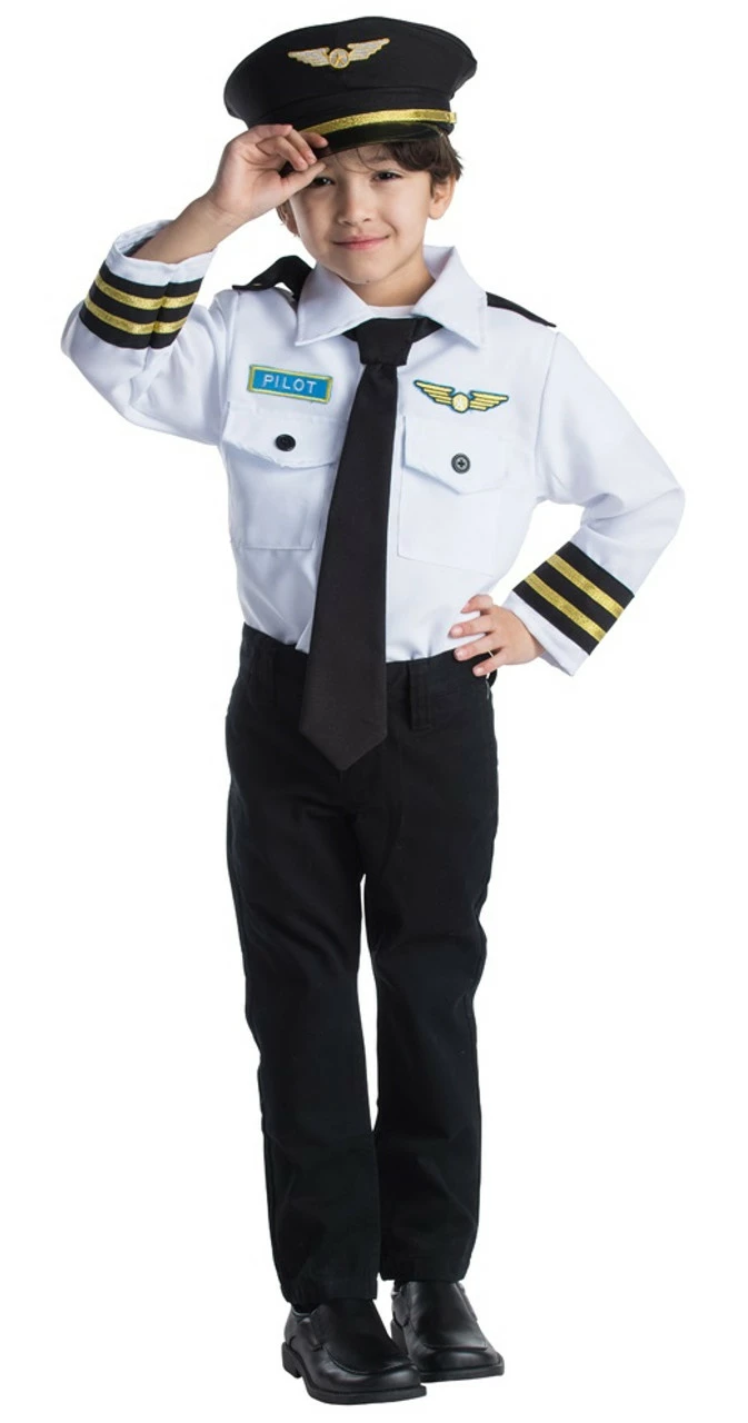 Does your little boy dream about flying through the skies and travelling around the world someday? Get him ready with this Pilot Boy Costume and he’ll be one step closer to making his dream a reality! This dreamy outfit features a long sleeves white polo shirt with an attached black tie, pockets with real button details, embroidered pilot patch, black buttons down the centre and pilot epaulets. It also comes with a pilot hat with a gold outline. It’s a very versatile outfit and can be worn not just on Halloween, but for many themed parties or events. Get this for your little boy and he’ll be so excited to wear this.