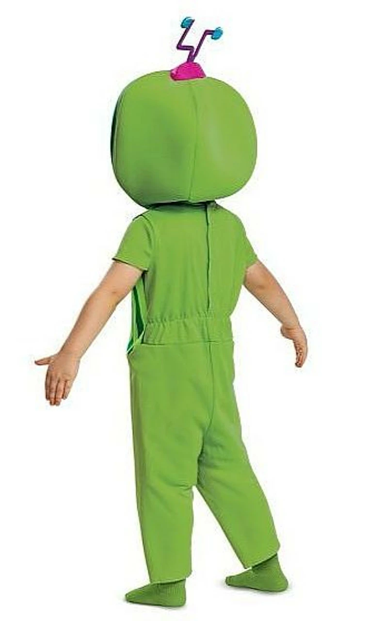 Is you toddler humming the nursery rhymes he’s watching on Cocomelon channel all day long? Then he will love this costume . It features a green jumpsuit with a big melon head just like the Cocomelon logo! It even features the cute ladybug with the antennas. Now he will be broadcasting the songs himself!!