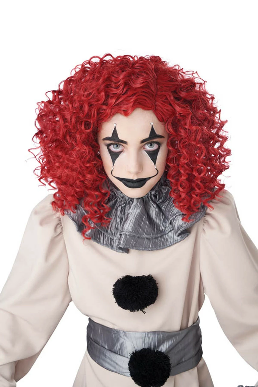 This wig is adjustable and fits adults and children. Perfect for everyone Corkscrew Clown Curls Wig features a dark red curly wig that completes any clown costume!