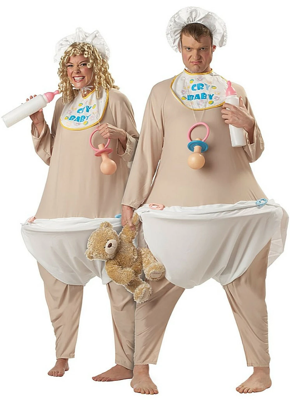 Get the applause and the laughs in this Cry Baby Adult Costume in any party. Though not exactly cute and cuddly, you will definitely get everyone’s attention. This costume is funny and unique with a body suit and hoop where the diaper is attached. It comes with a white bonnet and printed bib to make the costume more credible. You will not come crying to mama in this costume.
