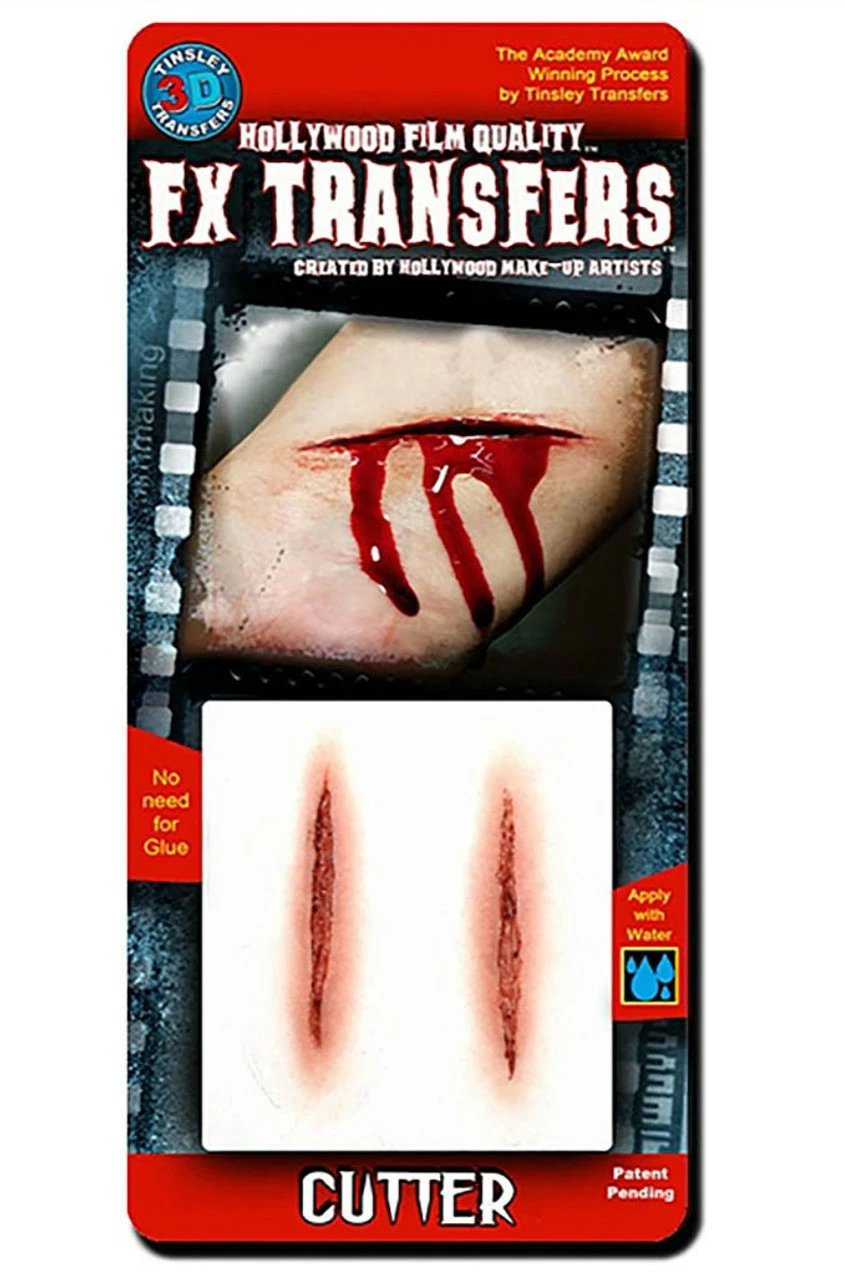 Our Cutter Transfer Tattoo 3D FX Transfers are a revolutionary new prosthetic. This technology garnered Tinsley Transfers an Academy Award for Technical Achievement. Easy to apply, self blending, no need for any glues or messy adhesives and looks absolutely real.