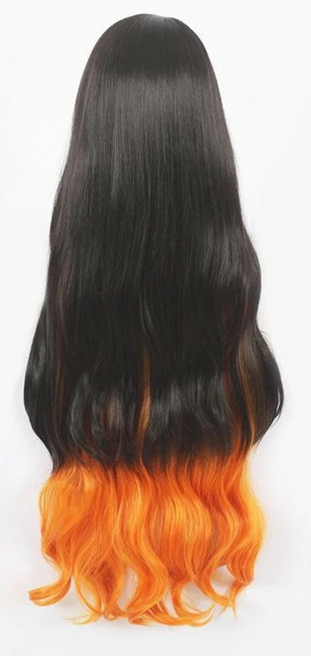 Do you want to cosplay as Nezuko Kamado? The Demon Slayer Manga Wig features a long black wig with orange ombre tips. It is around 40in long.