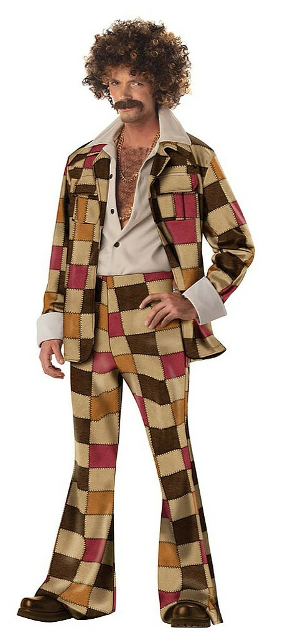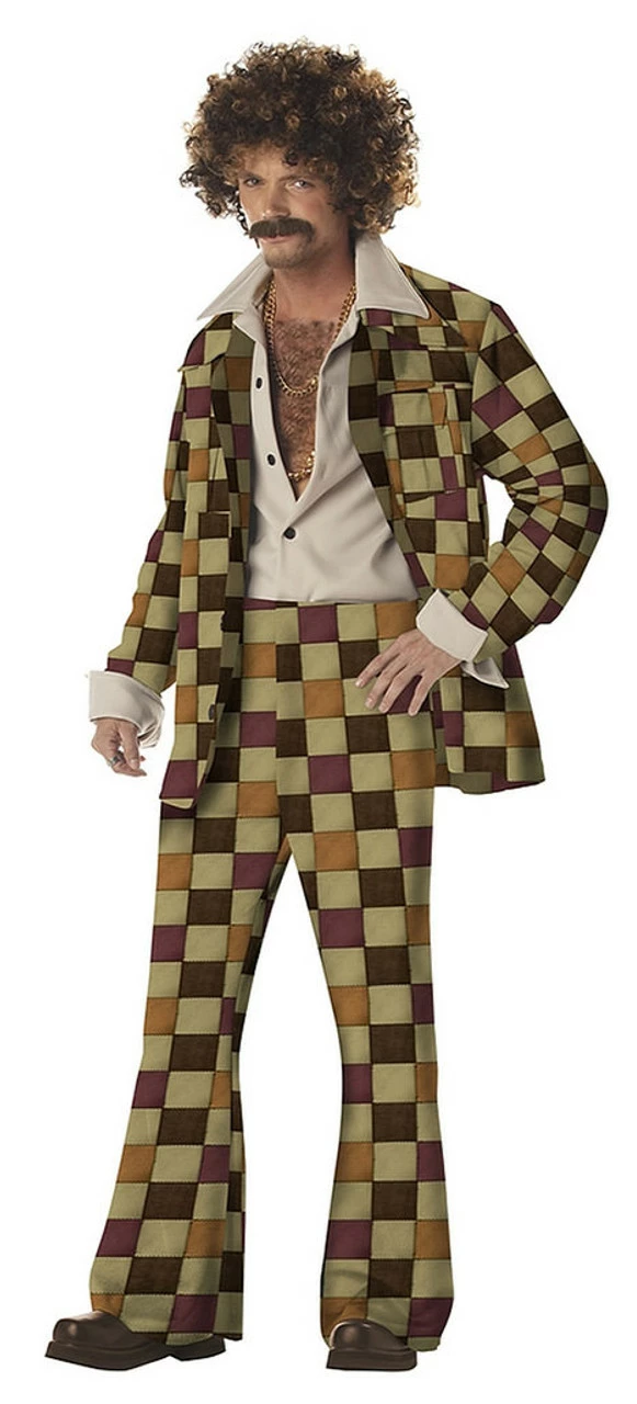 Bring back the 60’s and the 70’s in this Disco Sleazeball costume. This cool checkered jacket and bell-bottom pants comes with a sleeveless shirt will surely have the girls giggling in your party. The moustache complements the sleazy look of the 70’s that can’t be missed. You can get your partner to wear the matching Boogie Babe costume and come as a pair.