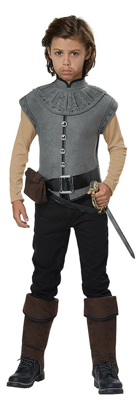 Does your child paint with all the colors of the wind? This Renaissance Kid Costume will be perfect for Hallowee, dress up and palys. The costume features a grey vest with attached sleeves, a lightly decorated collar and four shiny metallic buttons, as well as a belt with an attached pouch, and brown boot tops.