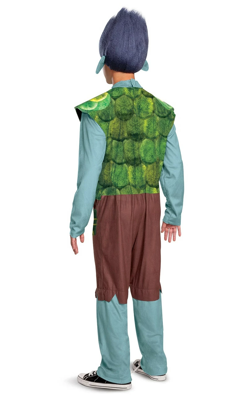 Become a member of The Snack Pack and Poppy’s love interest in this Trolls Branch Costume! This Troll officially licensed Man costume features a jumpsuit designed as a green shirt with an attached vest, and printed brown pants with printed patches. The cool wig with full faux fur and foam ears completes the character look.
