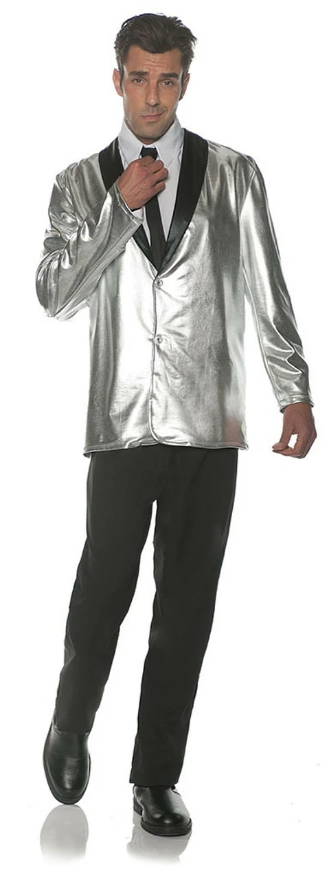 You’ll have the most stylish costume at the party with this classy, 50’s inspired Doo-Wop Silver Jacket! It features a metallic silver jacket with a black satin lapel.