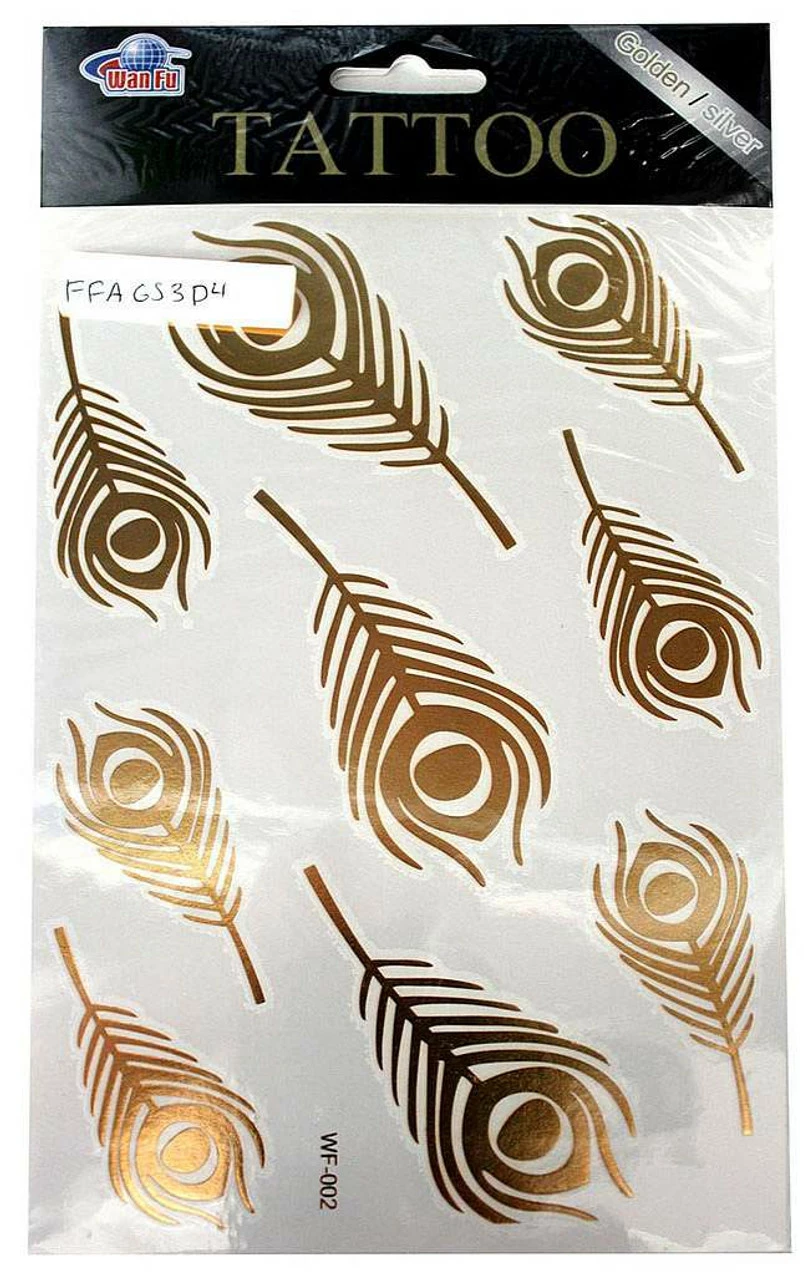 Beautiful Gold Tattoos to use all over your body as you please! Just add water over top and be ready for any music festival or make your Egyptian or Greek costume shine! It features gold feathered tattoos in varying sizes.
