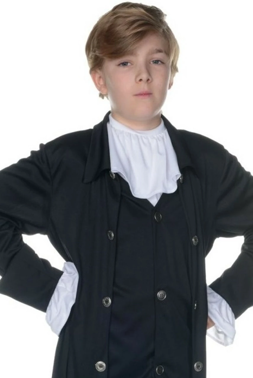 Step back into history with this colonial costume? First Settler Colonial Boy Costume includes a jacket with an attached vest with wrist ruffles and a white jabot for that authentic look. The matching pants complete the look.