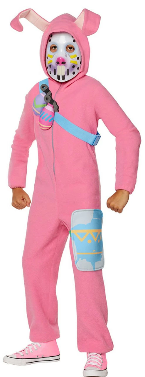 The Rabbit Raider from Fortnite is absolutely epic, and so will you be with this super realistic pink rabbit jumpsuit. Plus, you will own the most unique weapons: egg grenades! Your enemies won’t want to go near you.