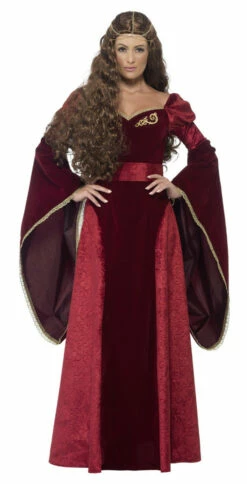 You’ll be the most regal guest at the party or Renaissance Fair with this Deluxe Medieval Queen Woman Costume! It features a stunning red dress with dramatic flared sleeves, a gold trim, and a beautiful red belt. Complete the look with the included royal headpiece to feel like a true queen!