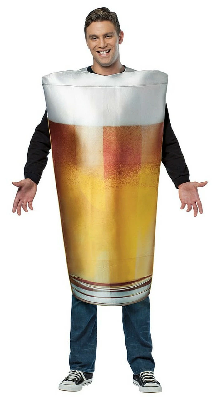 A must at any party is a nice cold beer. Indirectly, you will be able to bring some supplies with the Get Real Beer Pint costume. The costume is composed of a light and simple to wear one piece body which resembles a glass of freshly pored beer. You will make many people laugh, especially with a couple of alcohol jokes and you will definitely inspire them for a cold glass of beer.