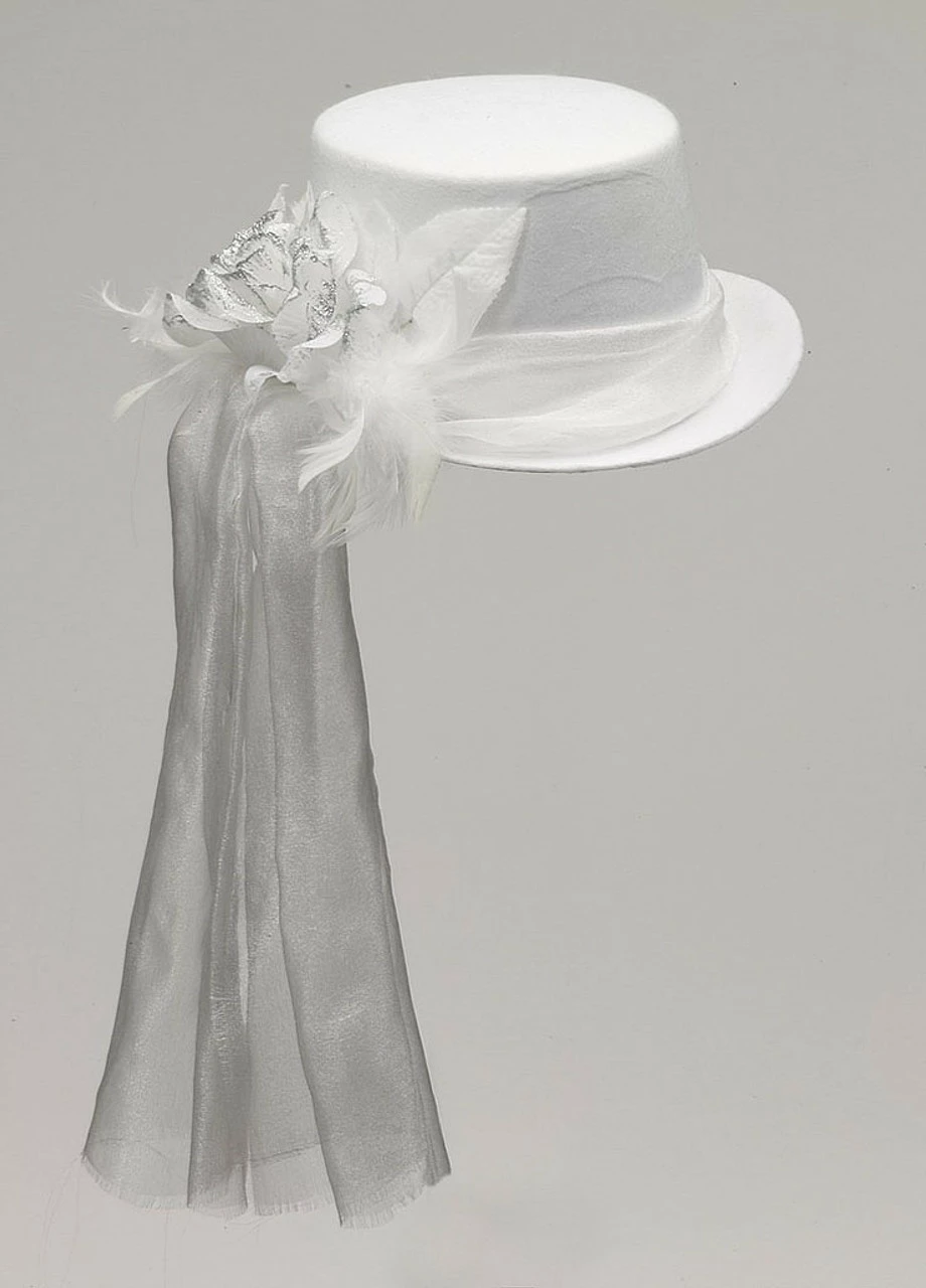 Ghostly Rose Top Hat White for women pairs perfectly with your Ghost Bride costume for the elegant and refined ghostly gal.
