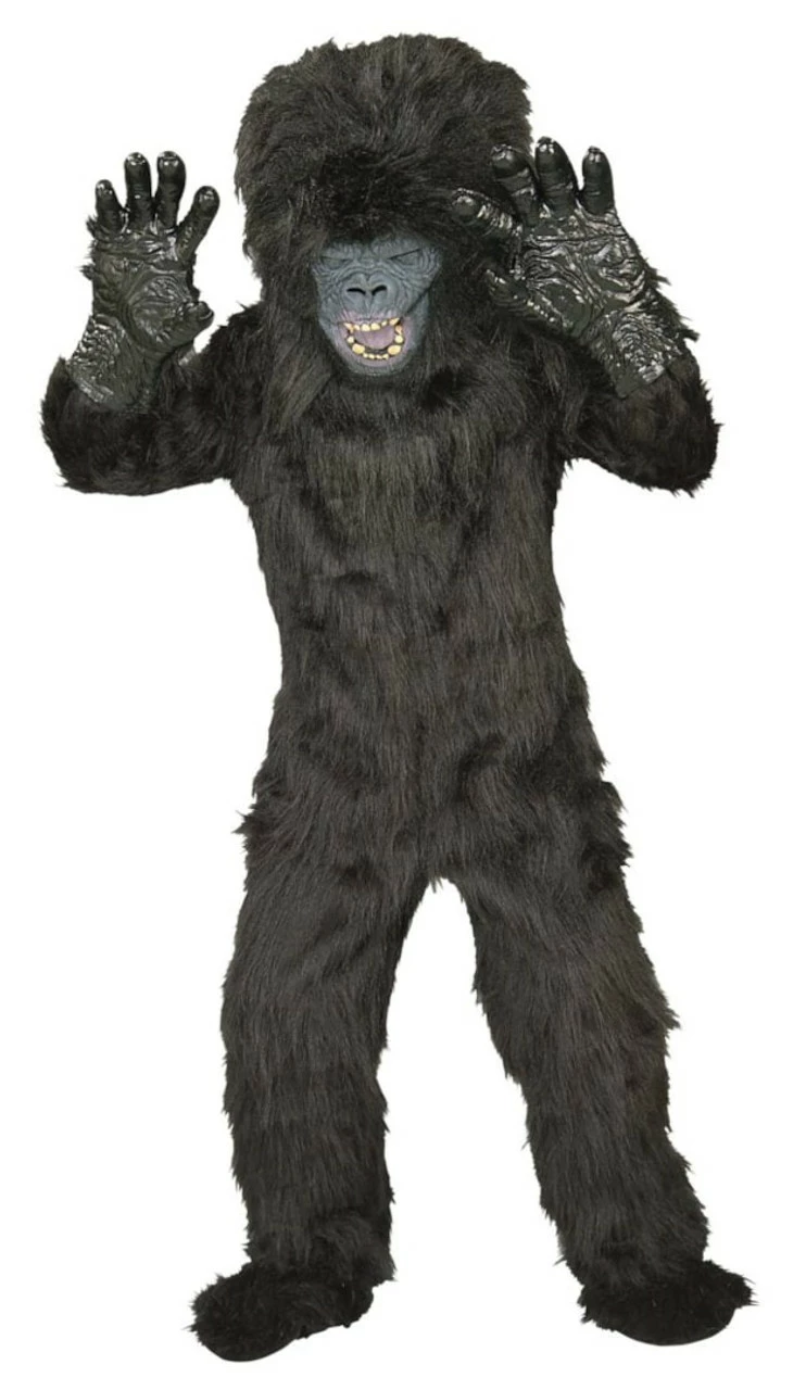 Become the king of the monkeys in this Gorilla Super Deluxe Kids Costume! This furry costume includes a black full-body jumpsuit that includes hands and feet. This costume also includes a realistic gorilla mask with its mouth open, so you can feel like a wild animal all day long!