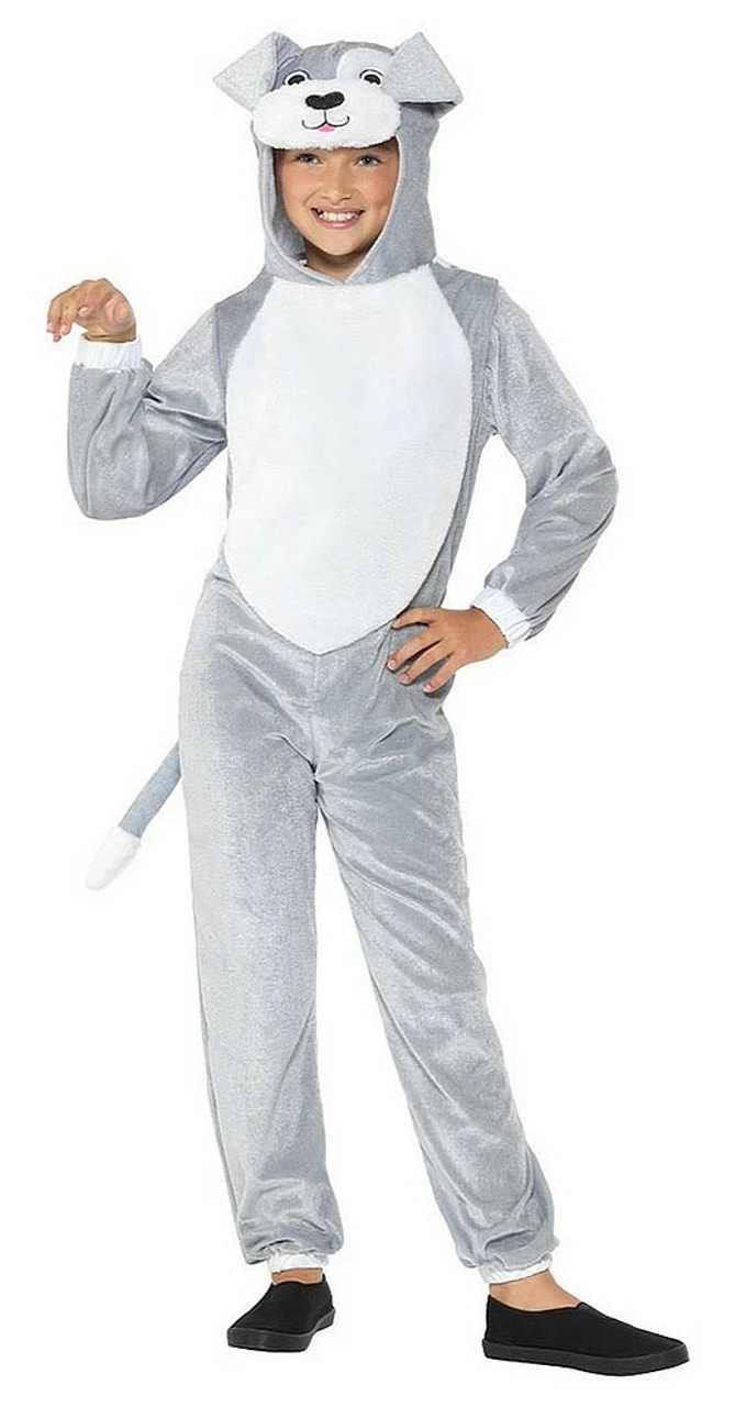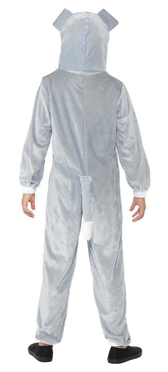 You simply can’t beat this cute and comfortable Grey Dog Hooded Jumpsuit! It features a grey hooded jumpsuit with an attached tail and a dog face design on the hood.