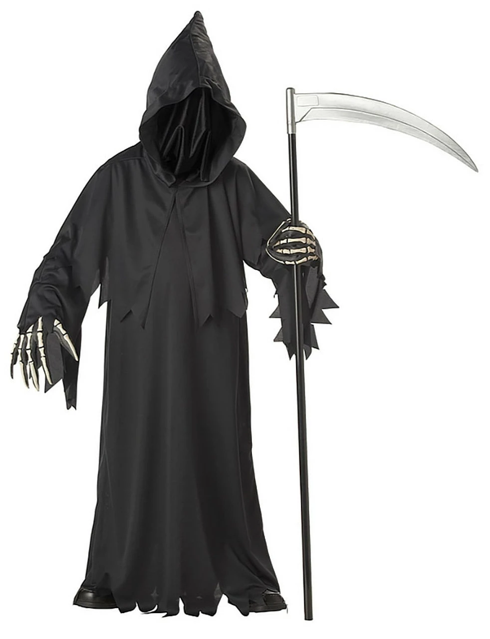 Grim Reaper Deluxe is one scary costume, you ca see them but they can not see you. The Grim Reaper Deluxe Costume includes
