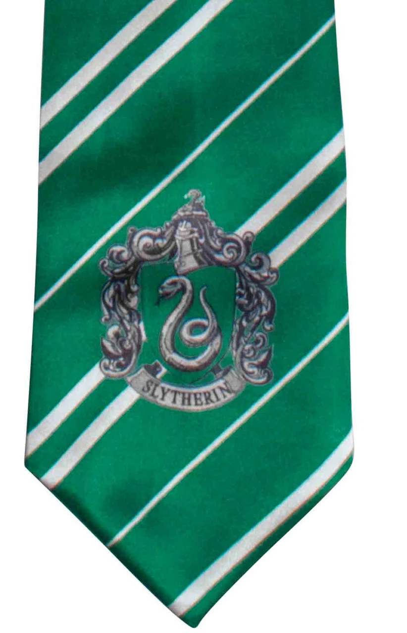 You won’t even need to go to Diagon Alley to get this officially licensed Slytherin Tie! Don’t let Professor Slughorn catch you without it—complete your Hogwarts Uniform and step into the magical world of Harry Potter with this green tie featuring diagonal gold stripes and the Slytherin crest.
