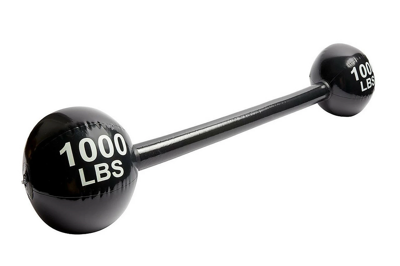 Complete your strong man costume with this 120 cm or 47-inch inflatable dumbbell!