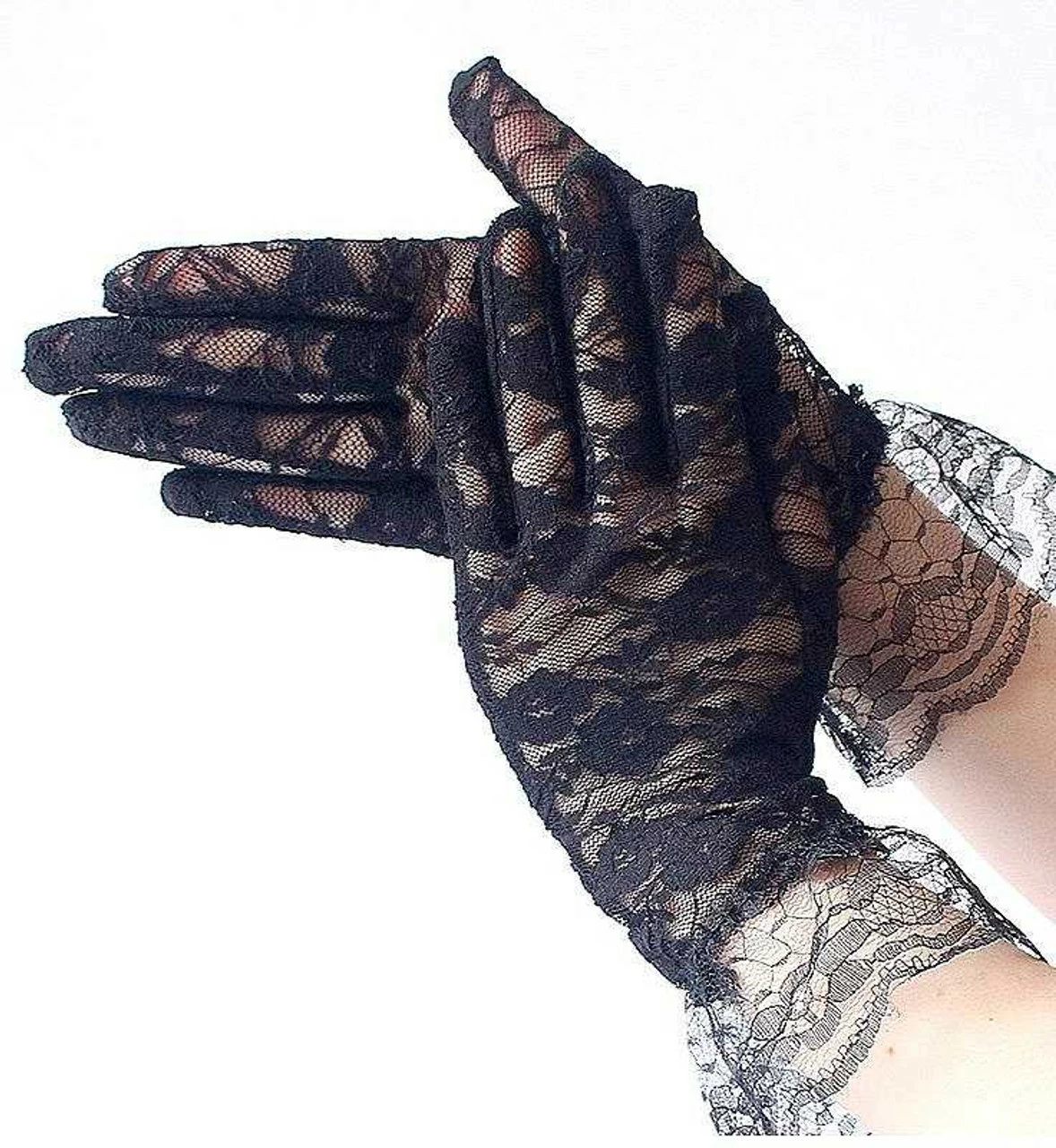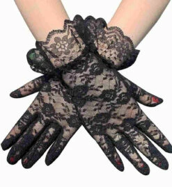 Complete your costume with these Lady Black Lace Gloves. Featuring black lace gloves with a lace trim on the wrists.