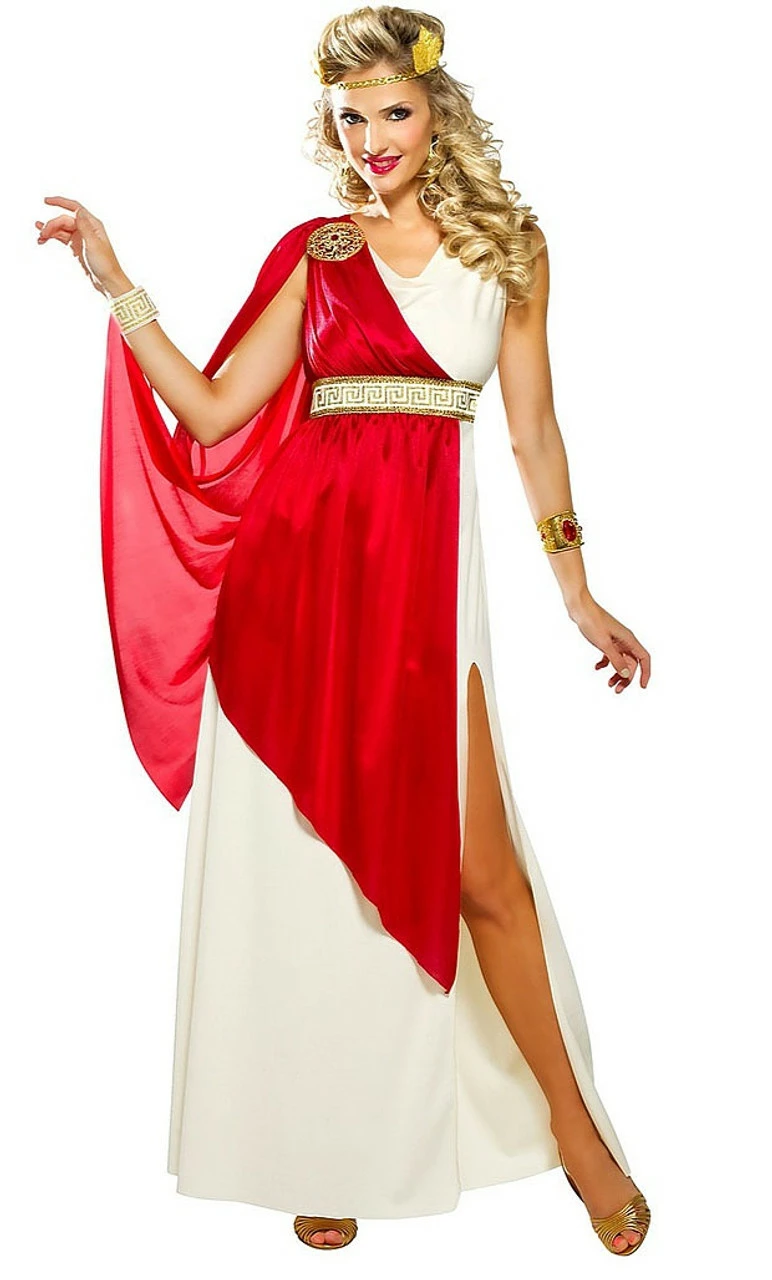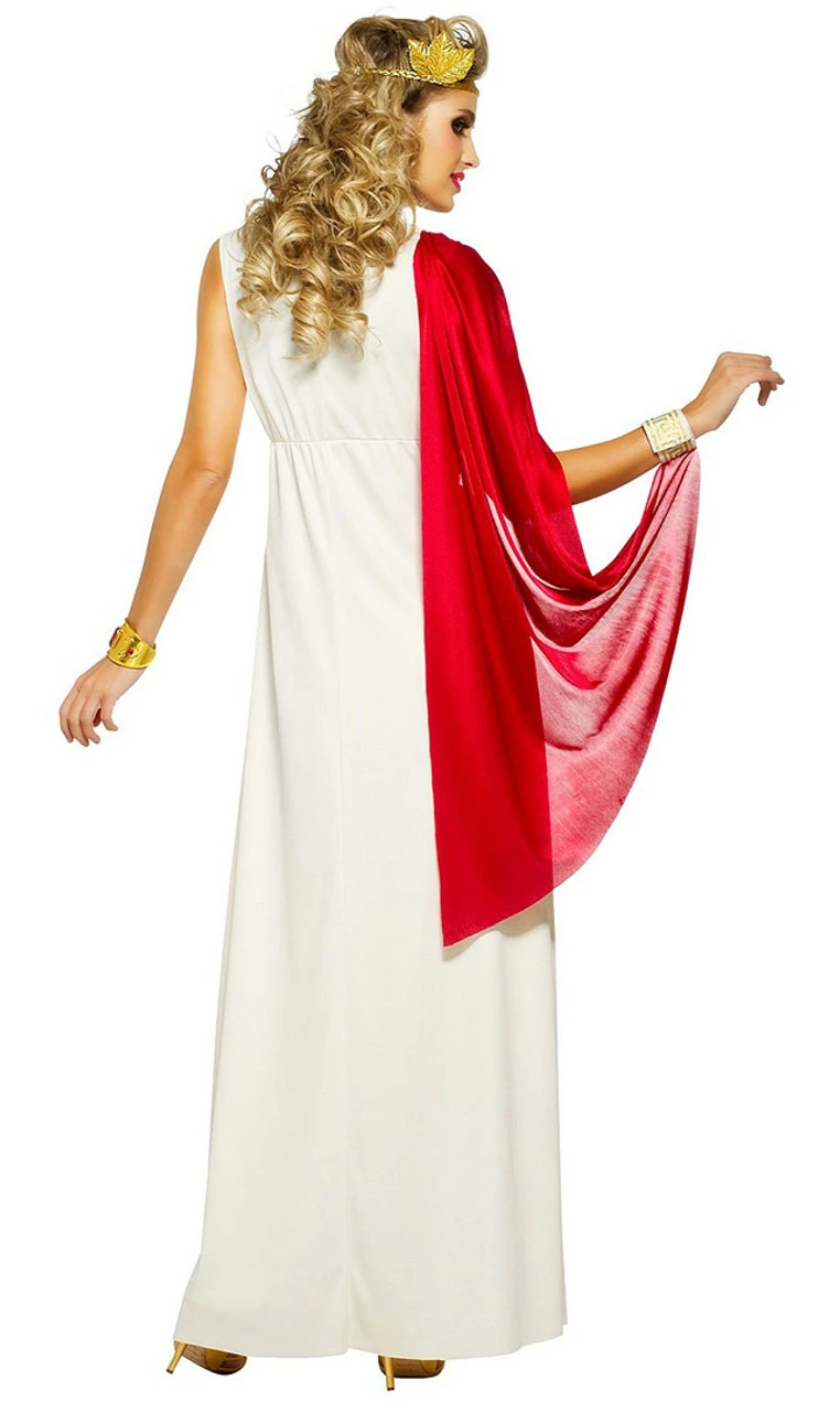 Get ready to rule the world in this Lady Caesar Costume! You will definitely look incredible in this Lady Caesar Costume featuring swanky dress with slit detail, attached delicate shoulder cape with an attached gold medallion with gem stone and shimmering detailed wrist cuff. A wreath headdress with gold laurel is included to complete Caesar’s crown of leaves signature look!