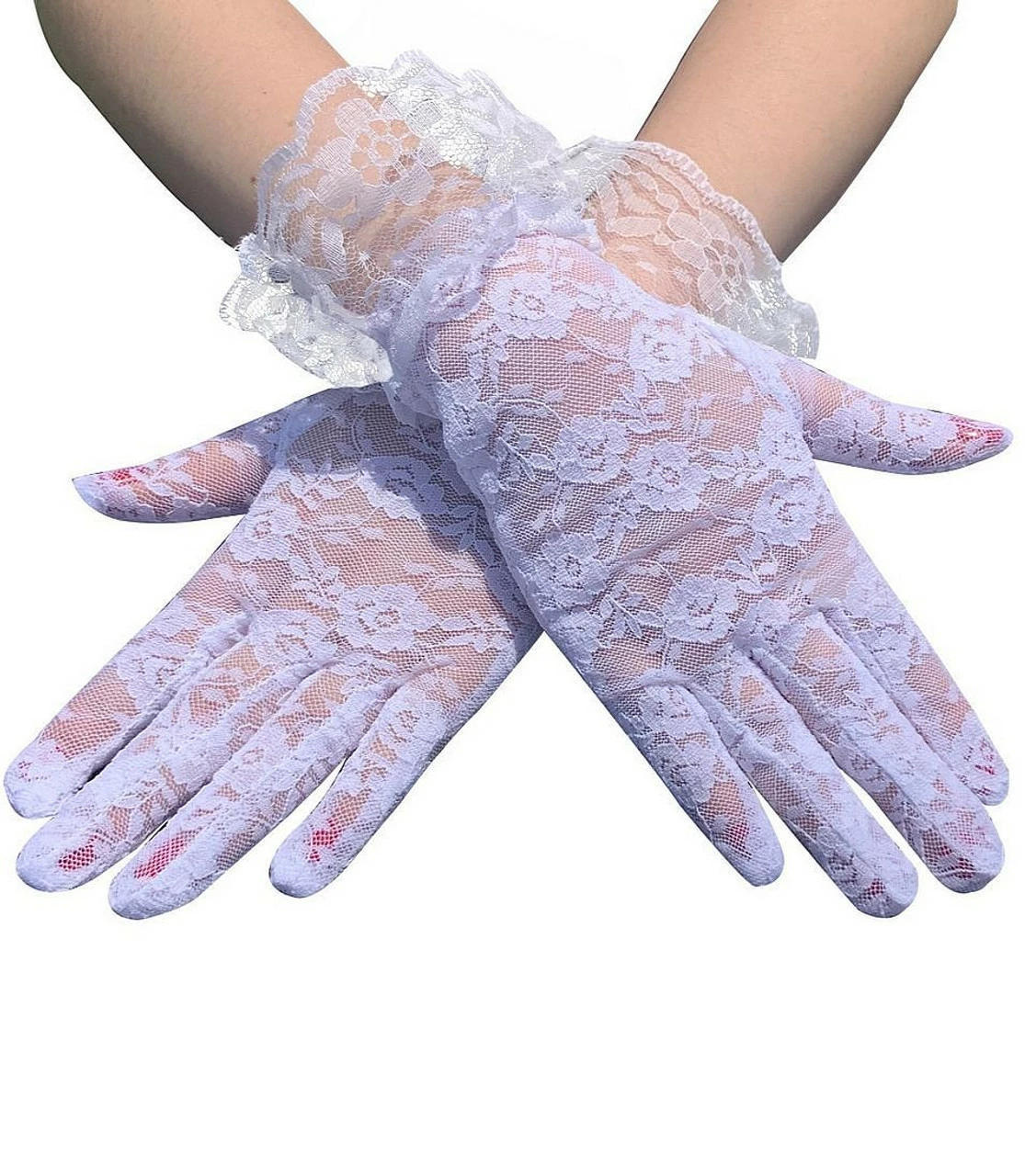 Complete your elegant costume with these Lady White Lace Gloves. Featuring white lace gloves with a lace trim on the wrists.