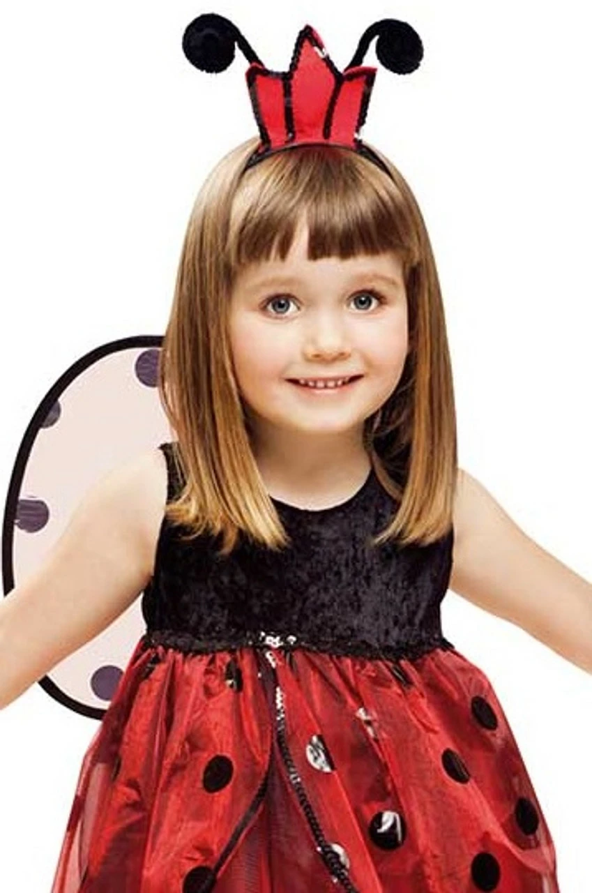 Watch your daughter transform into a beautiful ladybug princess in this stunning Ladybug Fairy Toddler Girl Costume! This costume includes a dress with a black upper-half and a red, layered skirt with black polka dots. It also includes the matching wings along with the crown-shaped and antennae headband.