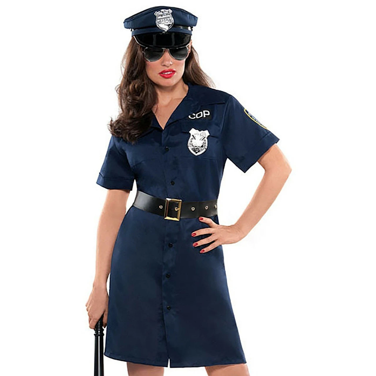 Crime-fighters can look stunning and fearsome in this Law Enforcement Dress! This blue dress, cut above the knee, offers a fun twist on the typical police uniform! It features a silver badge and an insignia that reads “cop”, as well as short sleeves, one of which has a police badge. The costume also comes with a shiny black belt with a square buckle.
