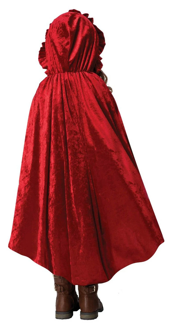 Your darling one will stroll through the forest all the way to Grandma’s looking dapper with the Little Red Riding Hood Toddler Girl Costume. The adorable satin blue dress comes with the attached apron with a picture of the wolf. The velveteen red cape with hood completes the red riding hood look. Now, Little Ride Riding just beware of wolves and go see your beloved granny that anxiously awaits your arrival!