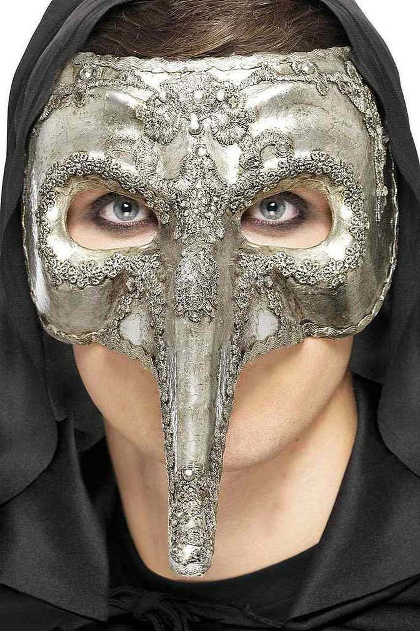 Have a ball with this stunning Luxury Venetian Capitano Mask Silver! It features a beautifully ornate silver mask with a long nose. You’ll be the most mysterious guest at the party with this mask!