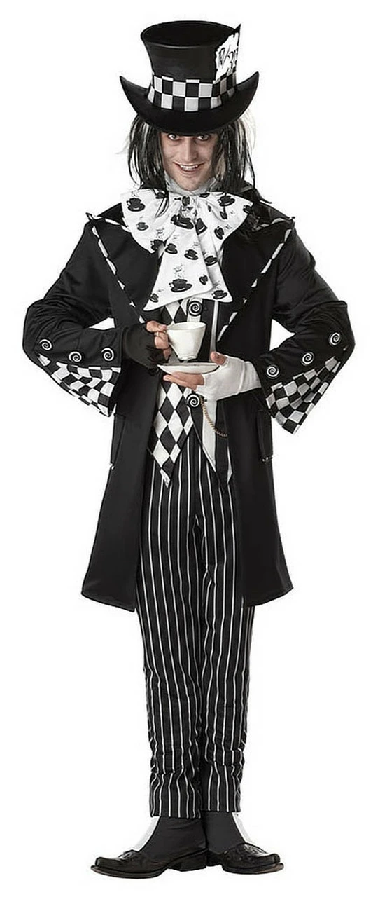 Add fun and life to any party in this Dark Mad Hatter Costume. This black and white render on the Mad Hatter will surely bring back the Alice in Wonderland Mad Hatter back to life.