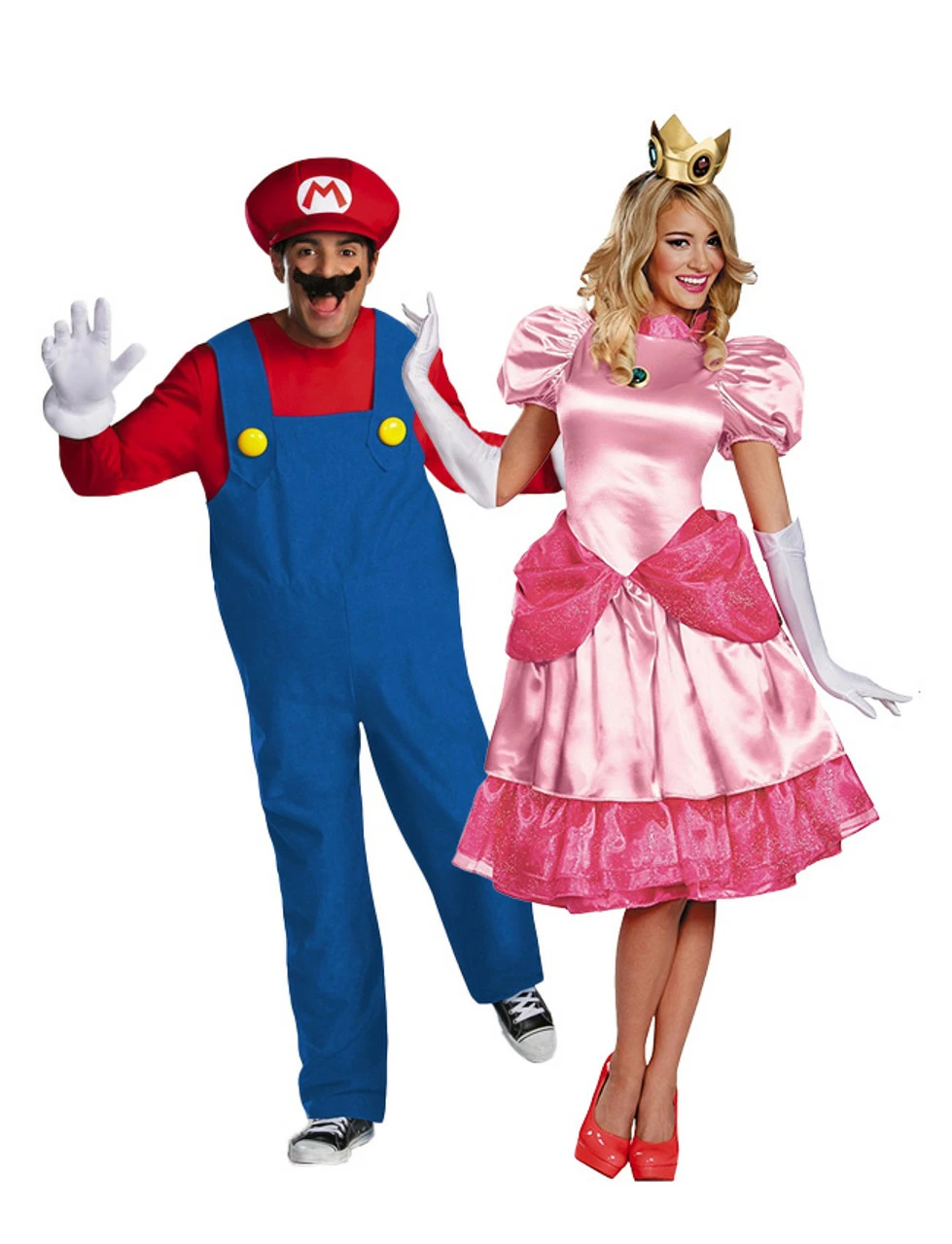 Become a sweet princess for the night and relive the fun time of Mario and the Princess Peach Game with this Nintendo Princess Peach Deluxe Adult costume. The light pink short dress follows the design of classical cartoons with candy pink waist line and skirt hem, and puffy sleeves. The dress is embellished by the stand-up collar, the royal headpiece crown and broach.