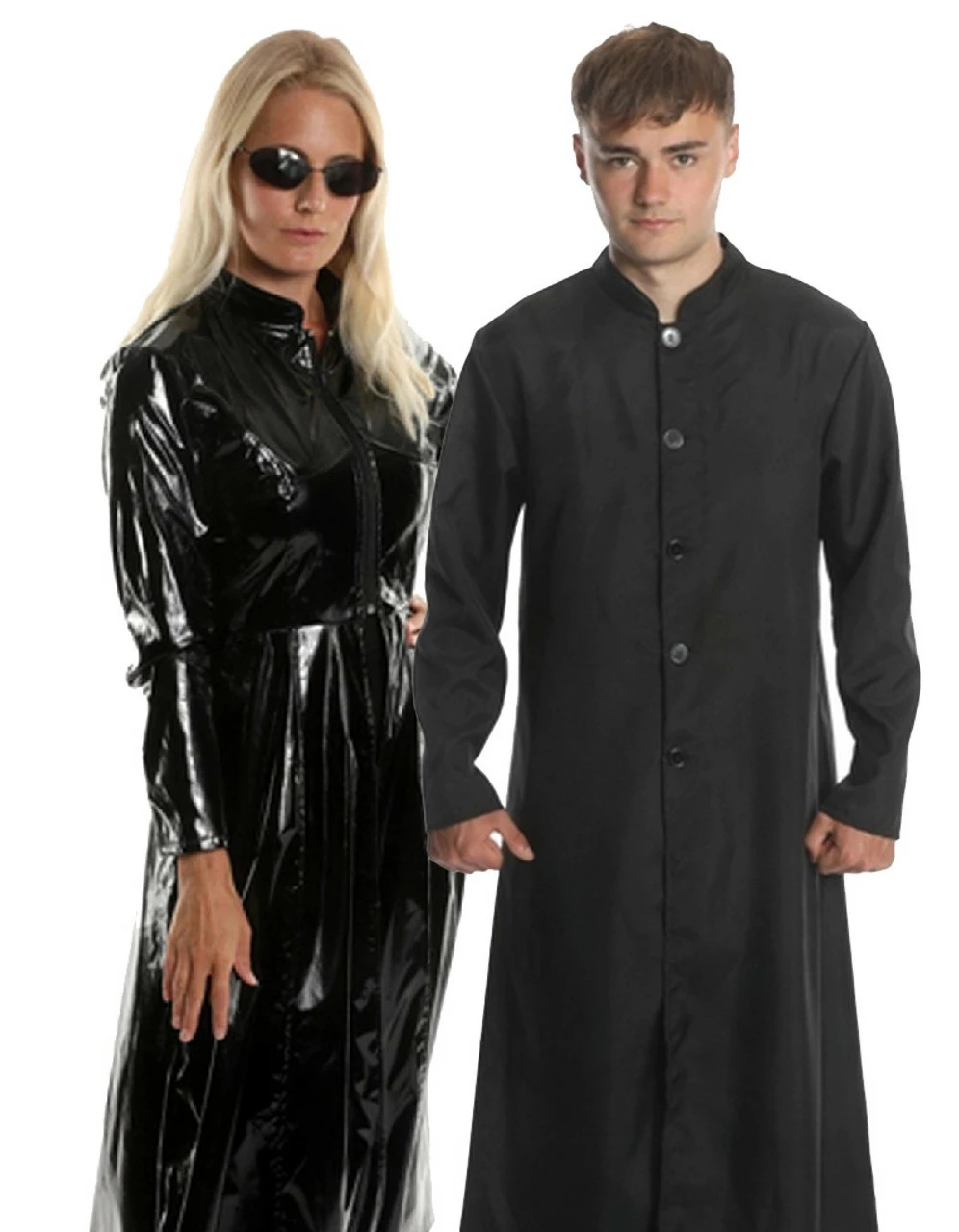 Enter Cyber-space with this Matrix Hero Women Costume! This Matrix-inspired outfit includes a long PVC black trench coat with zipper enclosure in the front. It also features long sleeves and a collar so you can move through the night as secretive as can be.