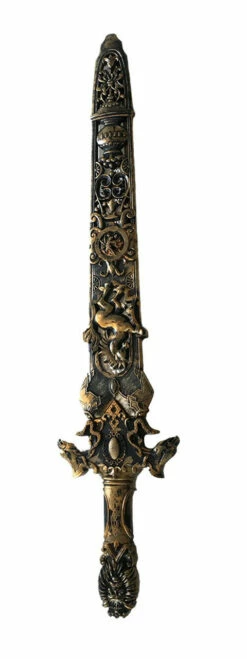 This stunning Deluxe Medieval Bronze Sword and Sheath feature incredible detail such as a horse, a lion head, and more! You’ll win every battle with this gorgeous sword.