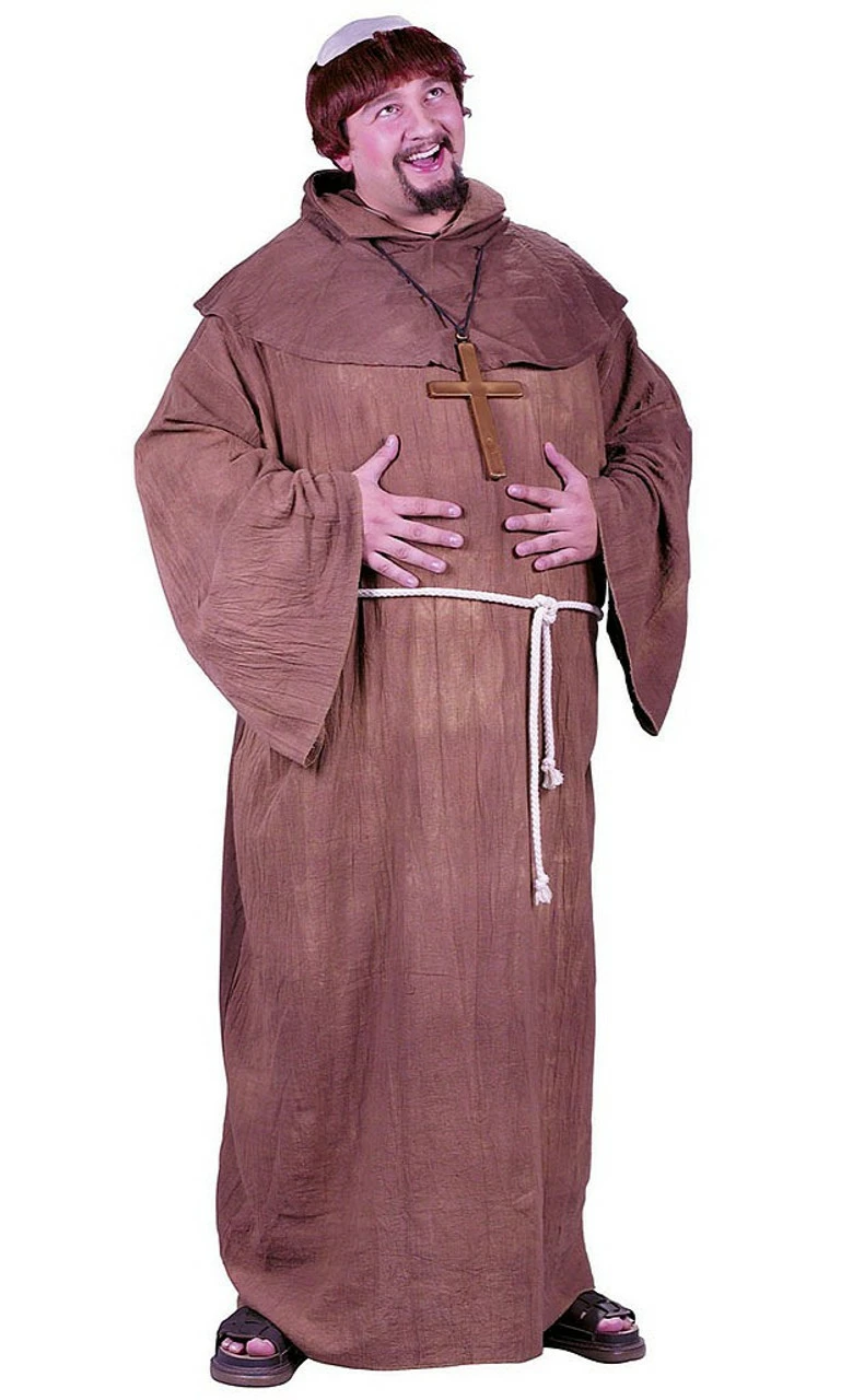 This year, you no longer have to worry about spending the rest of your life inside the temple as this Medieval Monk Plus Size Costume will make you ready to step out of your comfort zone and experience a wonderful holiday outside! This holy outfit features a full-length brown robe with a hood, a matching capelet, and a coordinating rope tie belt. It also comes with a wig that has a bald patch to make you look like a real friar. Finish this off with a rosary or cross necklace to complete your disguise. This Medieval Monk Plus Size Costume is a great outfit for Halloween, plays, Renaissance fair, and other historical or religious events.
