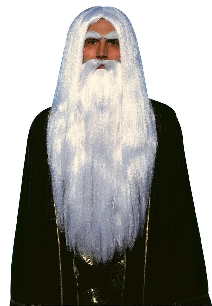 Impersonate the most famous wizard in literatures with this Merlin Wig and Beard. This straight white wig, moustache, and beard is made of 100% synthetic fiber. Eyebrows not included.