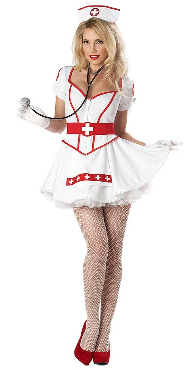 If you are looking for a sexy and attractive costume, this is one that will be a huge hit. Why settle for a common costume when you can have something this spectacular? The dress features a fitted top and a front zip design that allow you to decide how much cleavage you would like to share when you wear it. The skirt is loose at the bottom so that you have freedom of movement. The red belt adds curve to the waist line and we love the retro hat look. You be sure your patient’s heart will beat wild when they see their Nurse in the Nurse Heart Breaker Costume.