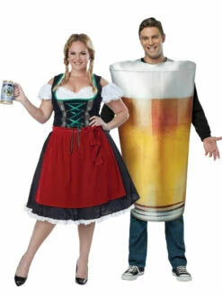 The Oktoberfest Fraulein Plus Size Costume, a classic outfit tailored for plus size beauties features a lovely green forest peasant dress crafted with off the shoulder white puff sleeves, burgundy apron and a defined bodice. It comes with pretty trims and pettiskirt.