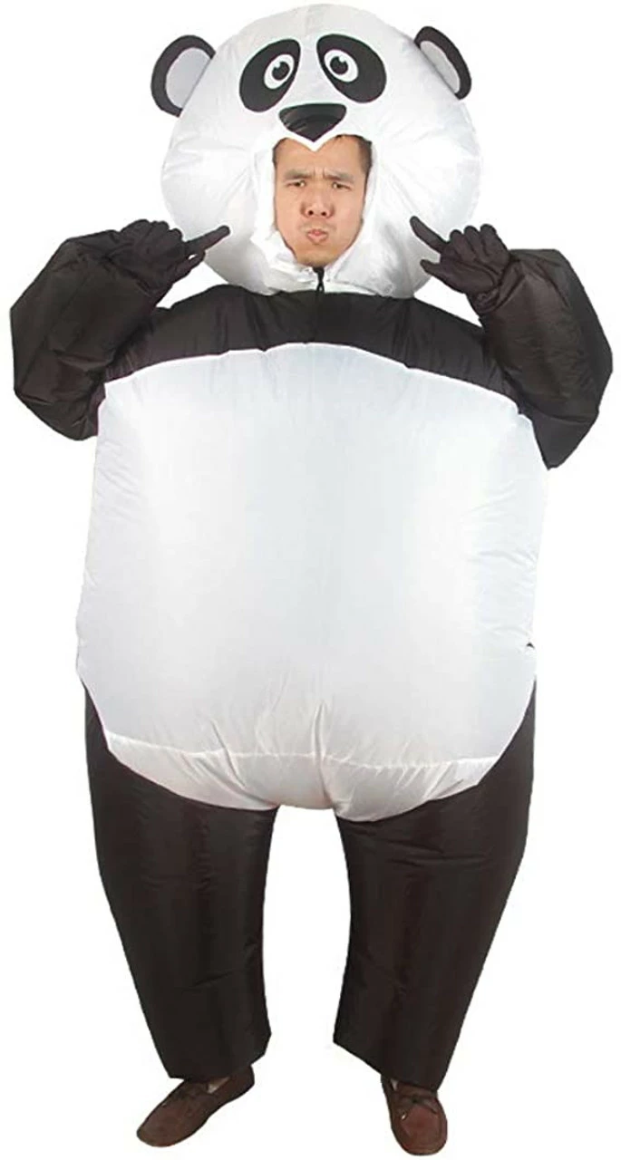 Want to be as precious as a panda? Just wear this Panda Inflatable Adult Costume and you will be the best panda you can be! It features a big white belly and black legs and arms with elastic at wrists, ankles & around face opening. The head features a black nose, the black panda eyes and their super cute ears. It also includes a usb fan with battery pack to keep the costume inflated. Don’t forget to take the Bamboo sticks to your party!
