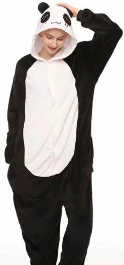Onesies are trendy this year! Why not choose a costume that will not only be cute and practical, but also soft and comfortable? This new Panda onesie features a black jumpsuit with white belly, a tail and adorable panda black ear the hood to make you look extra cute. Now what are you waiting for, come and join the trend! The onesie also includes a zipper in the back, a butt flap, for conveniences so you can also use it as a cool lounge wear item or pyjama!