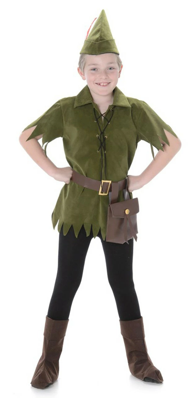 Fly off to Neverland in style in this adorable Peter Pan Kids Costume! Take flight with Wendy in his signature green tunic with lace-up collar and lovingly-distressed edges. Additionally, this costume includes the matching green hat with red plume on the side and a brown belt with gold buckle for the waist. You’ll never have to grow up in this amazing costume this Halloween season!