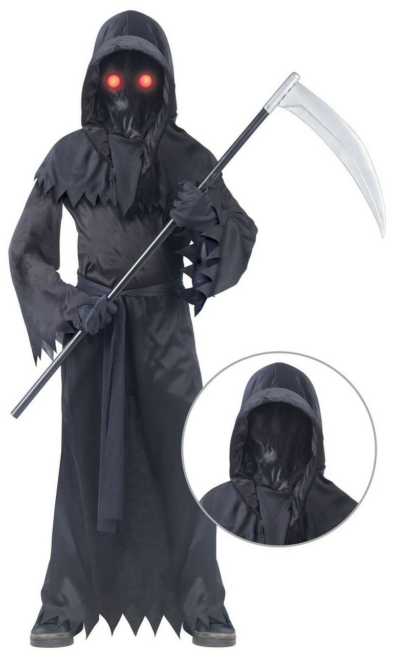 Time to collect some souls! Featuring a full-length black robe with matching gloves, belt and hood, this Fade In/Out Phantom Child Costume is sure to give a freaky night this Halloween. But, its light-up eyes will give more fear to all party goers. This ensemble comes with electronic glasses that feature a fade-in and fade-out mechanism, which is meant to wear beneath the mask for extra fun. Let your child have a wonderful Halloween this year by bringing home this wonderful outfit!