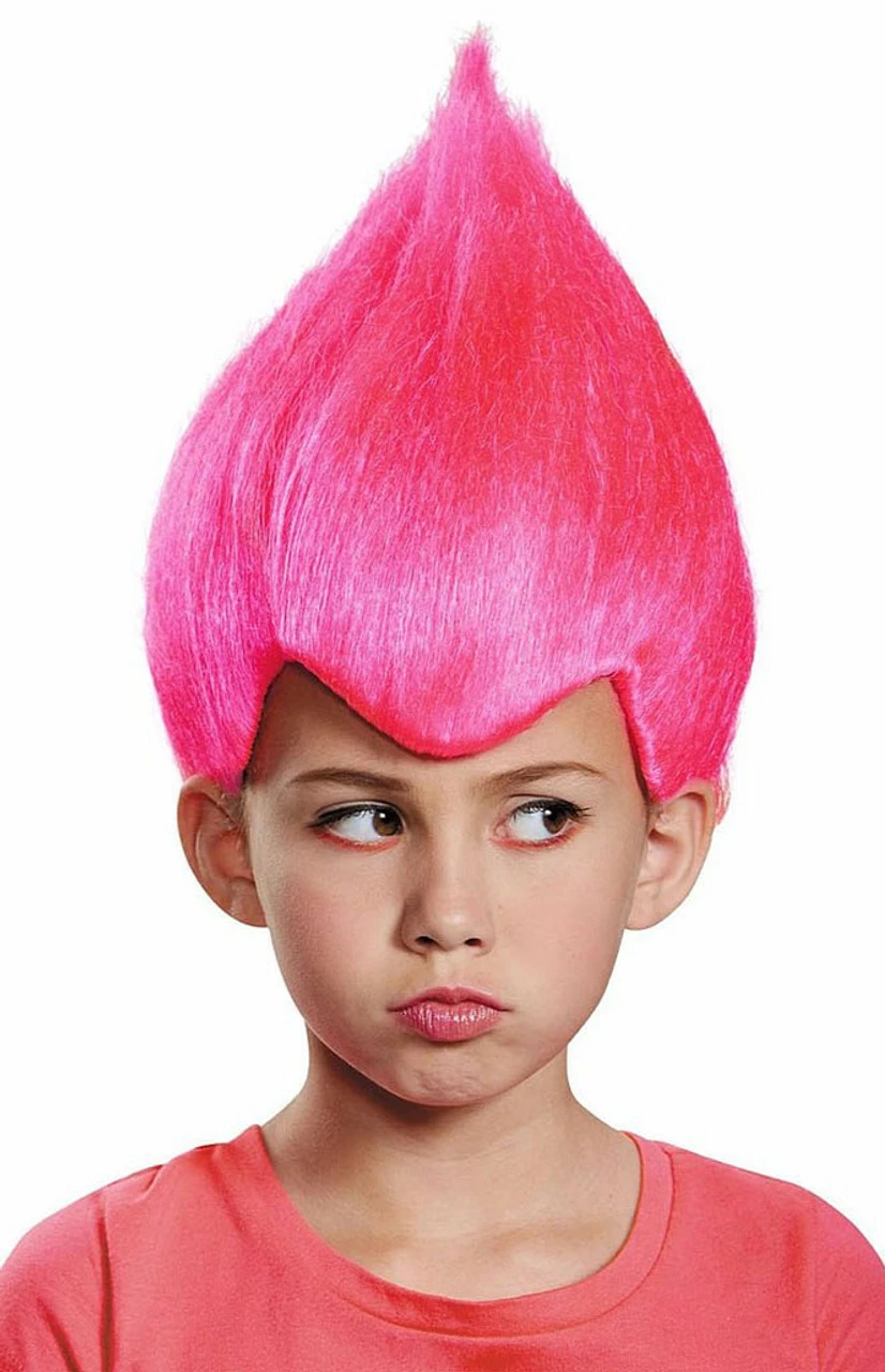 The Trolls red wacky wig includes: