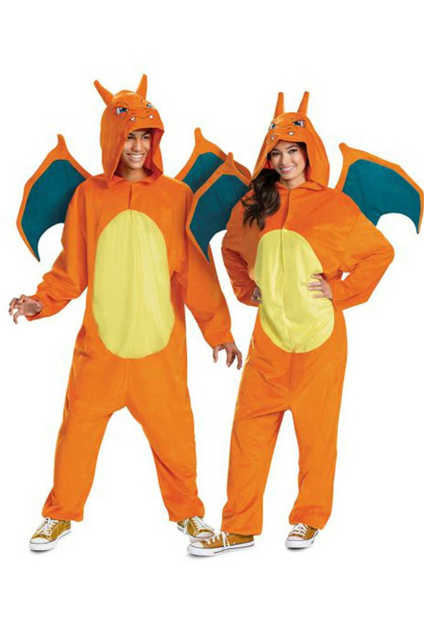 Are you a fan of Fire Pokémon types, is your favorite Pokemon Charizard? This is the perfect costume for you! Pokemon Charizard Deluxe Adult Costume features a comfy and cozy hooded jumpsuit with the characters face on the hood and a matching tail. The Detachable wings complete this look!